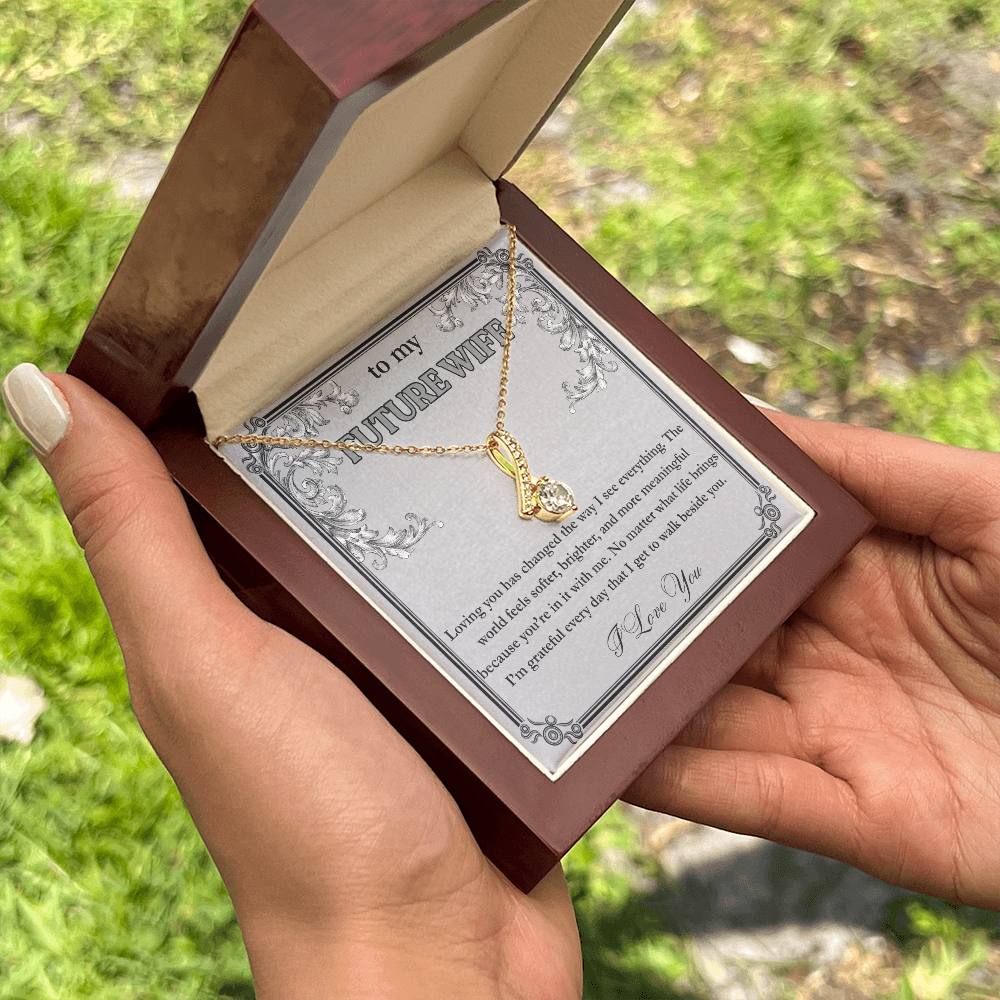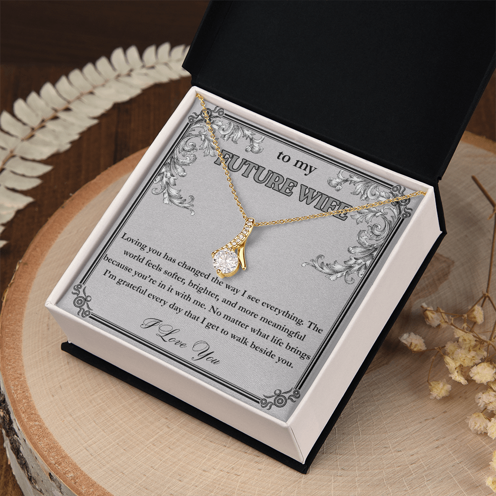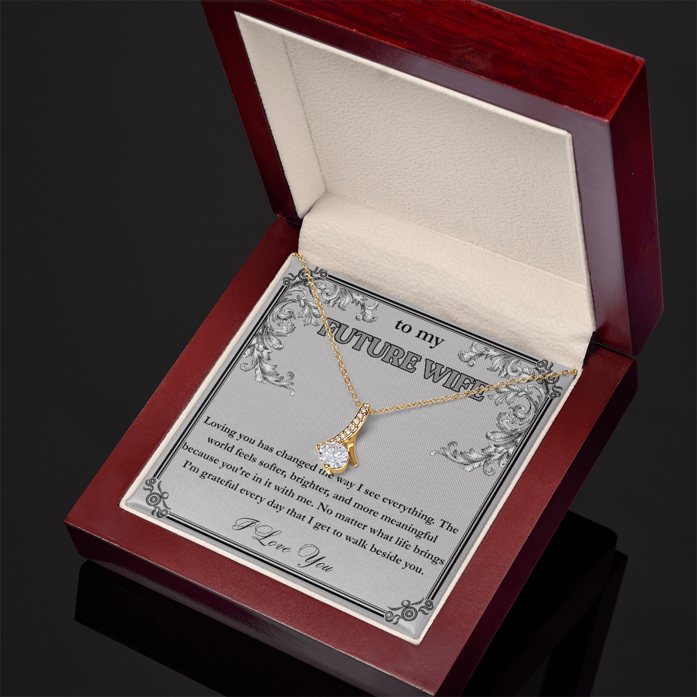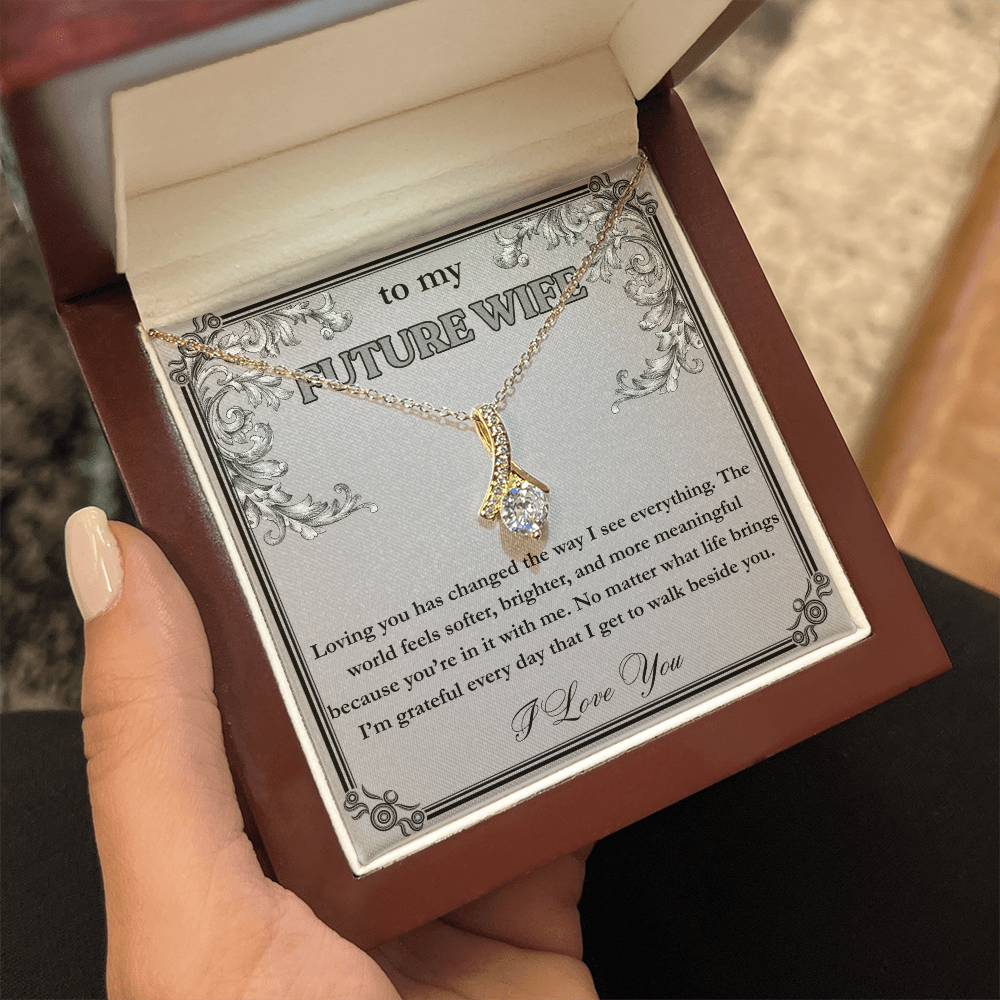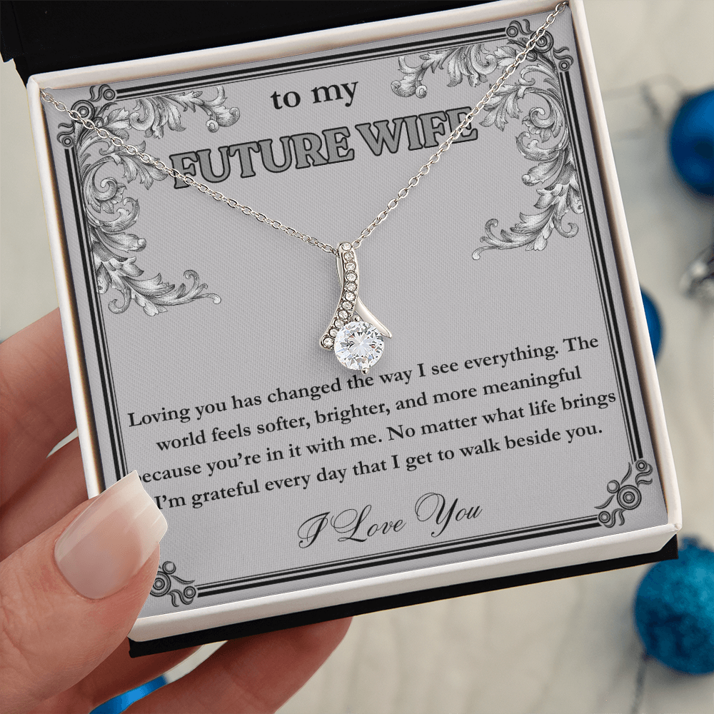 Celebrate the woman who captures your heart with this stunning necklace designed to honor your deepest commitment. Crafted with elegance and intention, this piece combines timeless beauty with meaningful symbolism—a wearable reminder of the love and future you're building together. Whether worn as a promise, an engagement gift, or a cherished keepsake, this necklace speaks to the depth of your connection. Perfect for the woman who deserves to feel as extraordinary as she truly is.